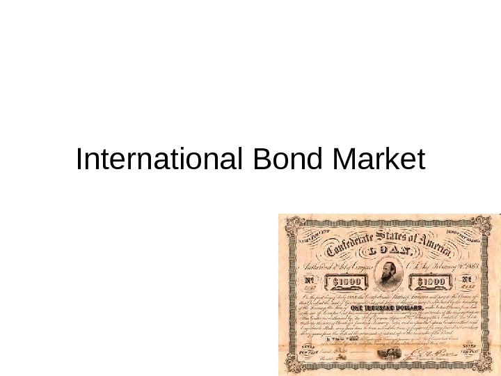 International Bond Market Plan: 1. Structure of