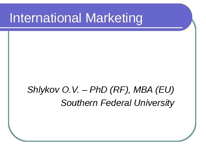 International Marketing Shlykov O. V. – Ph. D