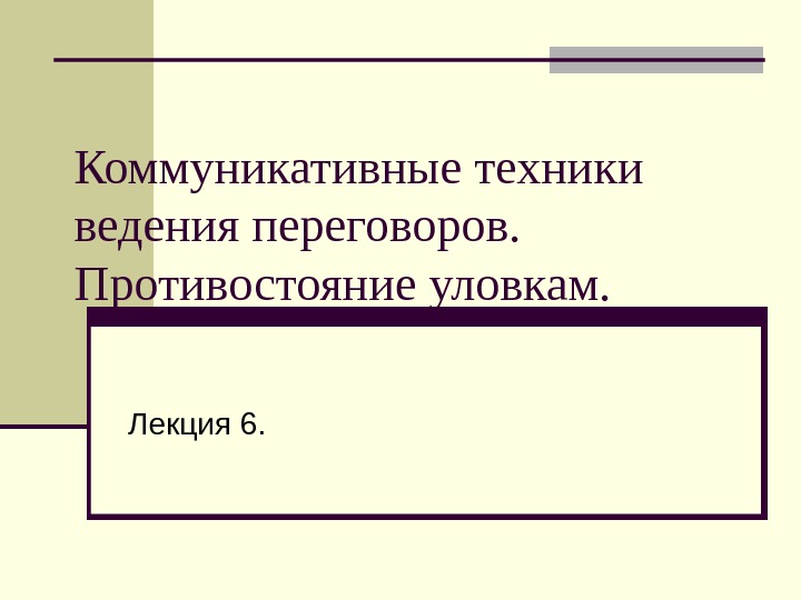 Коммуникативные техники ведения переговоров. Противостояние уловкам. Лекция