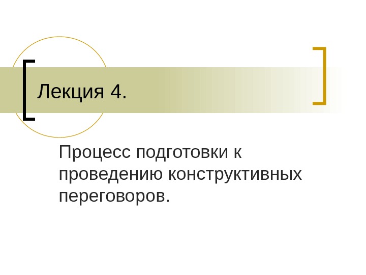 Лекция 4. Процесс подготовки к проведению конструктивных переговоров.