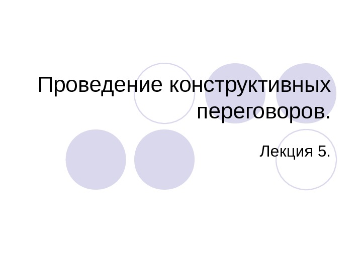 Проведение конструктивных переговоров. Лекция 5. Вопросы лекции: