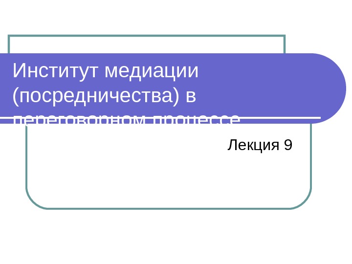 Институт медиации (посредничества) в переговорном процессе Лекция 9