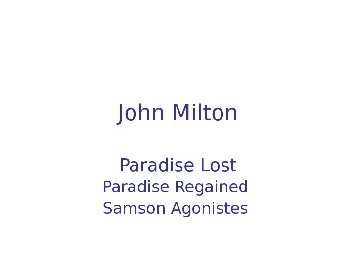 John Milton Paradise Lost Paradise Regained Samson Agonistes