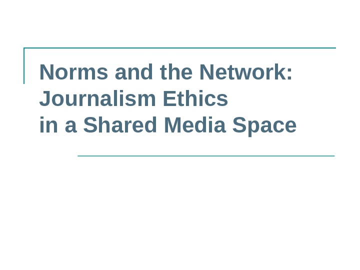 Norms and the Network: Journalism Ethics in a