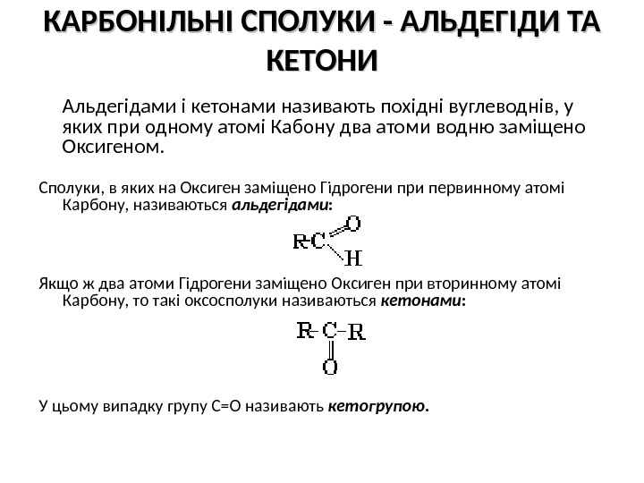 КАРБОНІЛЬНІ СПОЛУКИ — АЛЬДЕГІДИ ТА КЕТОНИ Альдегідами і