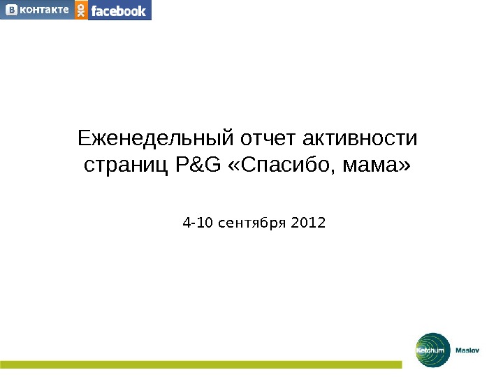 Еже недельный отчет активности страниц P&G «Спасибо,