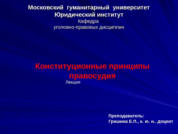 Московский гуманитарный университет Юридический институт Кафедра уголовно-правовых дисциплин