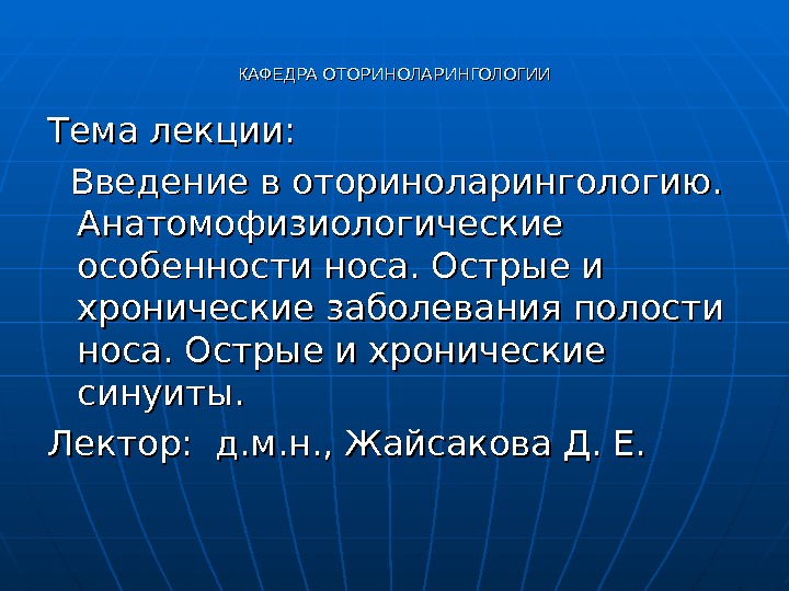 КАФЕДРА ОТОРИНОЛАРИНГОЛОГИИ Тема лекции: Введение в оториноларингологию.