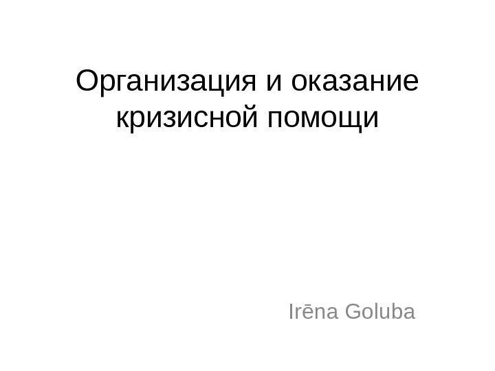 Организация и оказание кризисной помощи Irēna Goluba