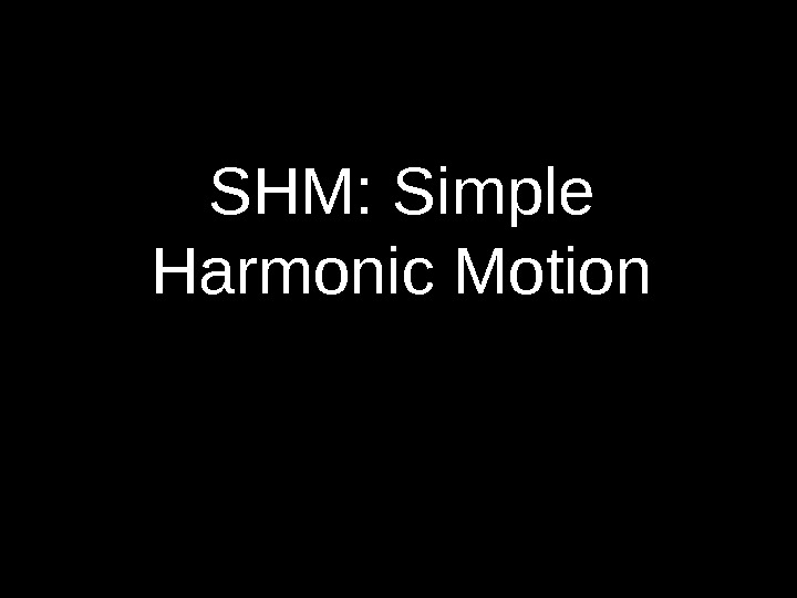 SHM: Simple Harmonic Motion Simple Harmonic Motion