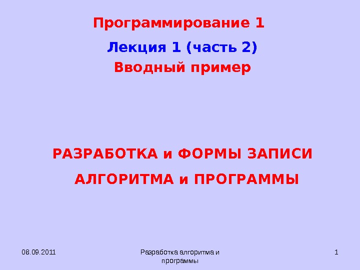 15. 09. 2011 Язык С++. Начало 1 Программирование