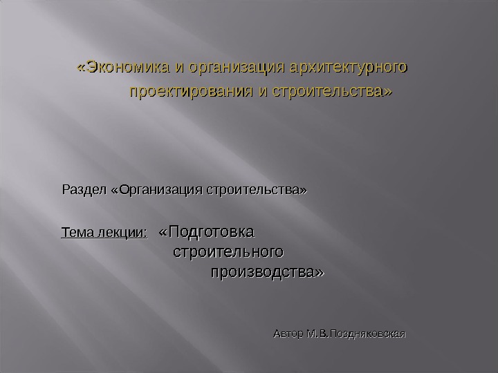 Раздел «Организация строительства» Тема лекции «Строительные генеральные планы.