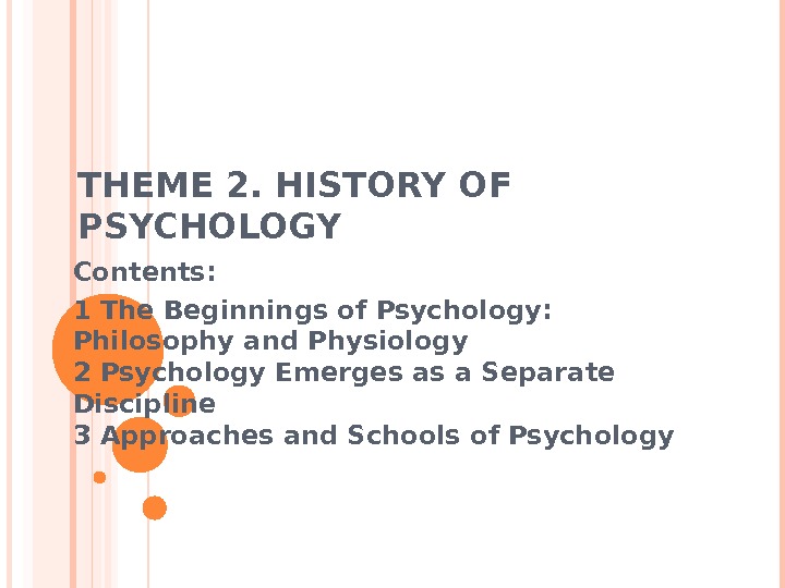 THEME 2. HISTORY OF PSYCHOLOGY Contents: 1 The
