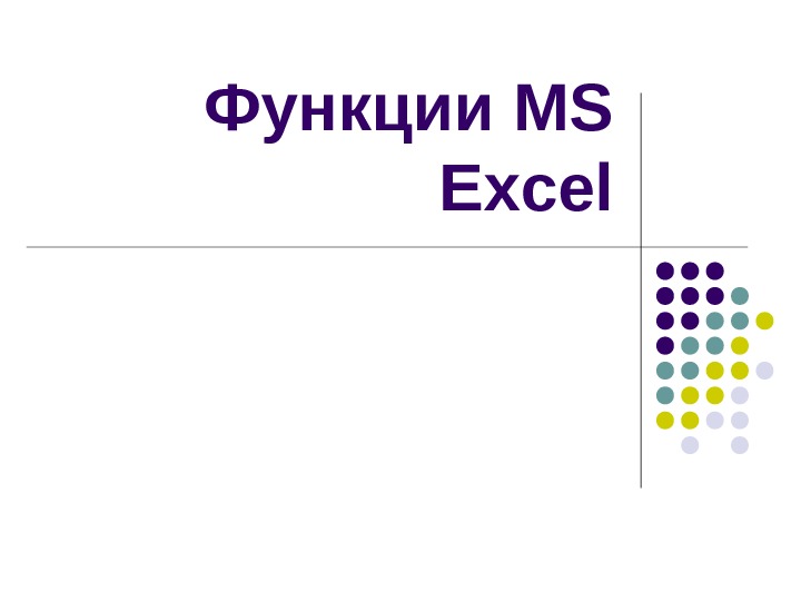 Функции MS Excel Функция Функции—заранееопределенные формулы, которыевыполняютвычисления