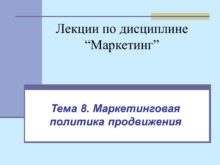 Лекции по дисциплине “Маркетинг” Тема 8. Маркетинговая политика