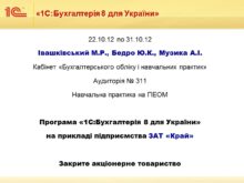 «1С:Бухгалтерія 8 для України» 22.10.12 по 31.10.12 Івашківський
