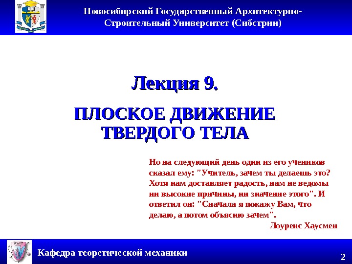 Новосибирский Государственный Архитектурно- Строительный Университет (Сибстрин) Кафедра теоретической