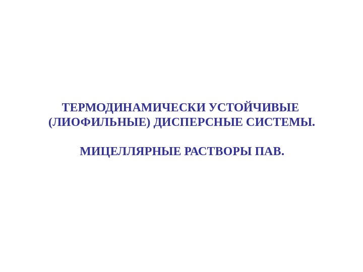 ТЕРМОДИНАМИЧЕСКИ УСТОЙЧИВЫЕ (ЛИОФИЛЬНЫЕ) ДИСПЕРСНЫЕ СИСТЕМЫ. МИЦЕЛЛЯРНЫЕ РАСТВОРЫ ПАВ.