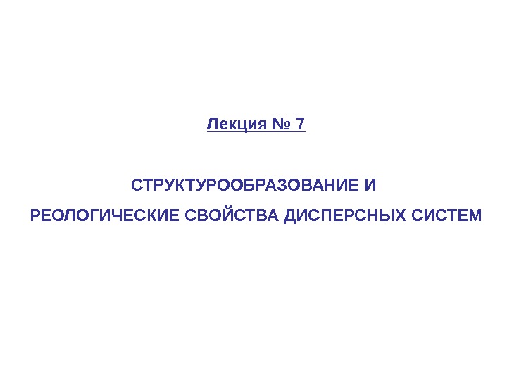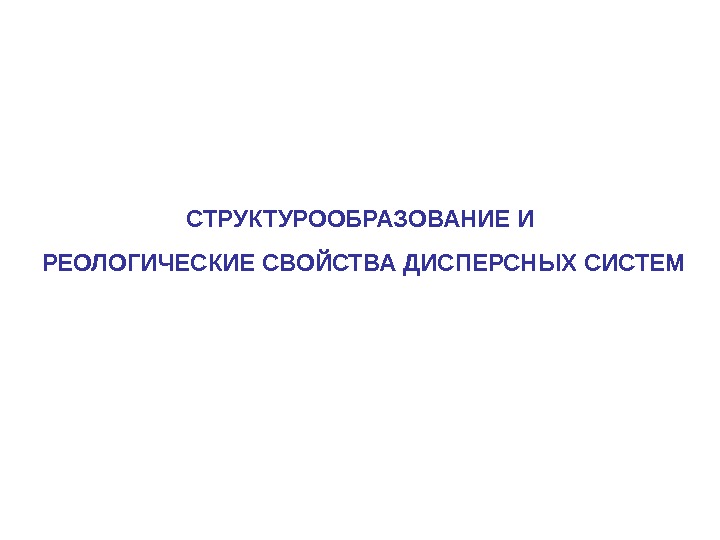 СТРУКТУРООБРАЗОВАНИЕ И РЕОЛОГИЧЕСКИЕ СВОЙСТВА ДИСПЕРСНЫХ СИСТЕМ Свободнодисперсные