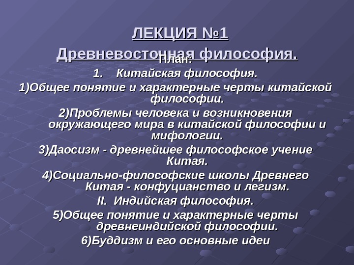 ЛЕКЦИЯ № 1 Древневосточная философия. План: