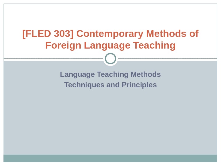 Language Teaching Methods Techniques and Principles[FLED 303] Contemporary