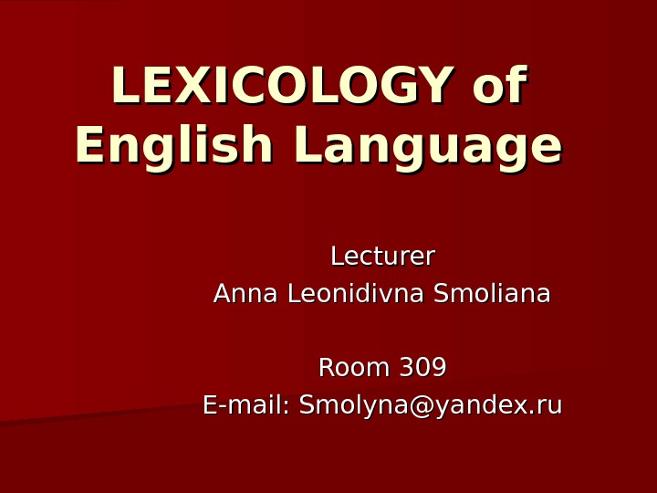 LEXICOLOGY of English Language Lecturer Anna Leonidivna Smoliana