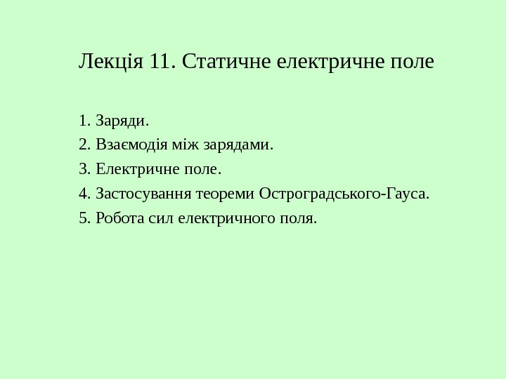 Лекція 11. Статичне електричне поле 1. Заряди. 2.