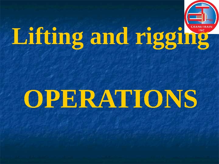 Lifting and rigging OPERATIONS Instructor Andy Bruce