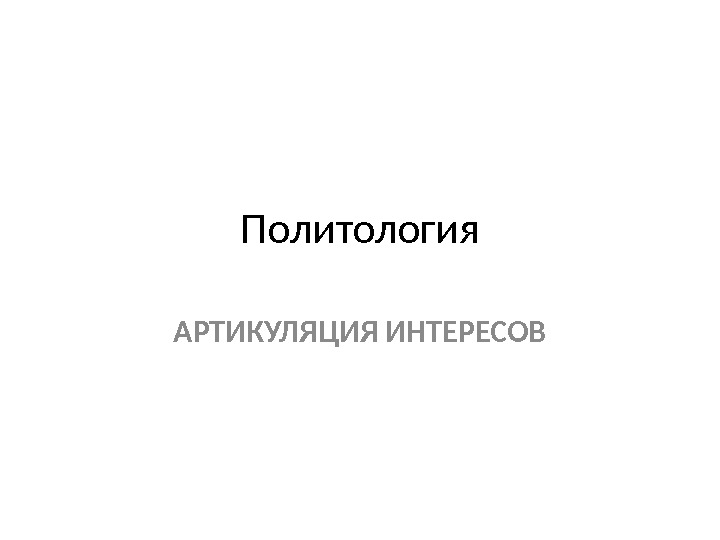 Политология АРТИКУЛЯЦИЯ ИНТЕРЕСОВ Артикуляция интересов = выражение