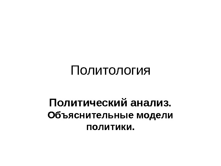 Политология Политический анализ. Объяснительные модели политики. Политика