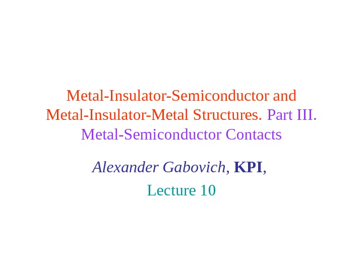 Metal-Insulator-Semiconductor and Metal-Insulator-Metal Structures. Part III.