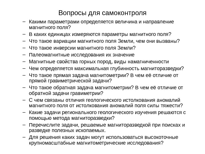 Вопросы для самоконтроля – Какими параметрами определяется величина