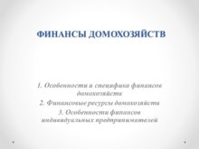 ФИНАНСЫ ДОМОХОЗЯЙСТВ 1. Особенности и специфика финансов домохозяйств