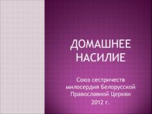 ДОМАШНЕЕ НАСИЛИЕ Союз сестричеств милосердия Белорусской Православной Церкви
