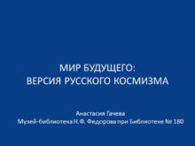 мир будущего: версия русского космизма Анастасия Гачева Музей-библиотека