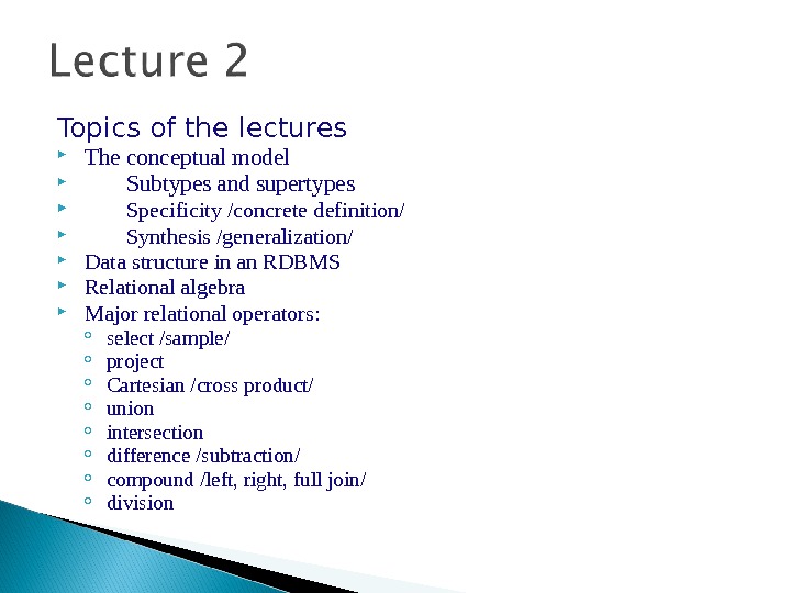 Topics of the lectures The conceptual