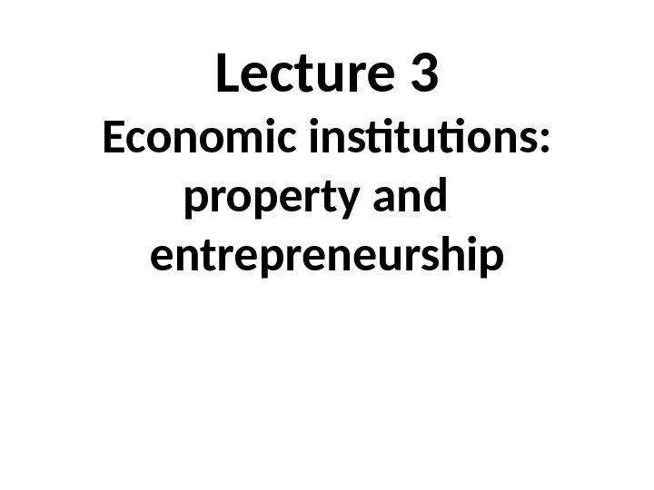 Lecture 3 Economic institutions: property and