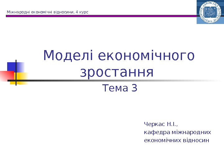 Міжнародні економічні відносини, 4 курс М оделі економічного