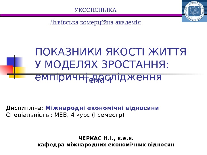 ПОКАЗНИКИ ЯКОСТІ ЖИТТЯ У МОДЕЛЯХ ЗРОСТАННЯ Львівська комерційна