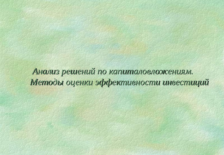 Анализ решений по капиталовложениям. Методы оценки эффективности инвестиций