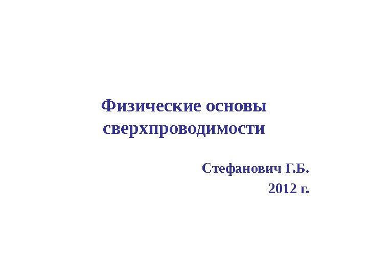Физические основы сверхпроводимости Стефанович Г. Б. 2012 г.