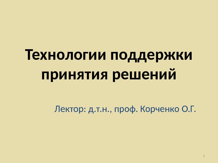 Технологии поддержки принятия решений Лектор: д. т. н.