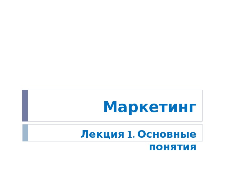 Маркетинг 1. Лекция Основные понятия