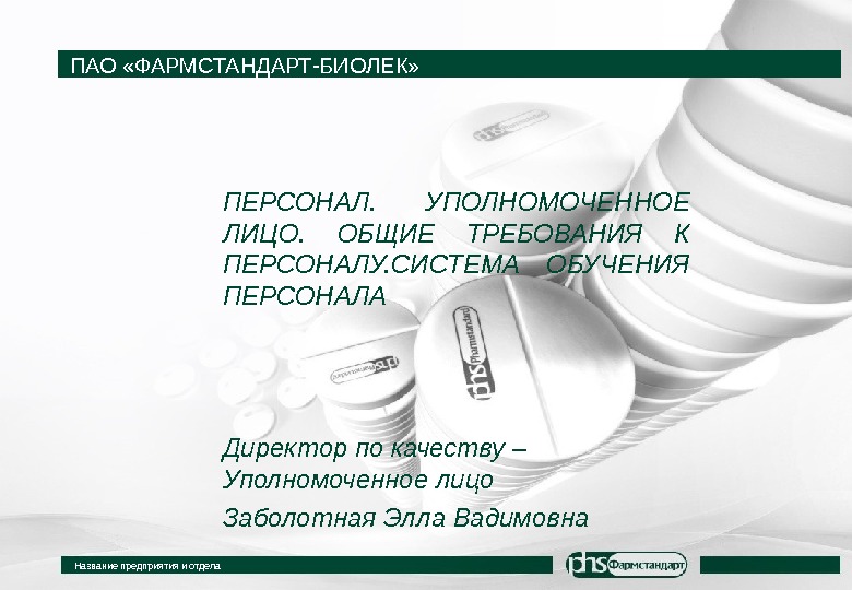 Название предприятия и отдела ПЕРСОНАЛ. УПОЛНОМОЧЕННОЕ ЛИЦО.