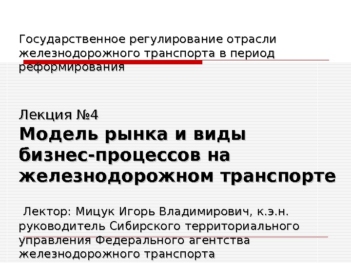 Государственное регулирование отрасли железнодорожного транспорта в период реформирования
