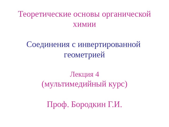 Теоретические основы органической химии Соединения с инвертированной геометрией