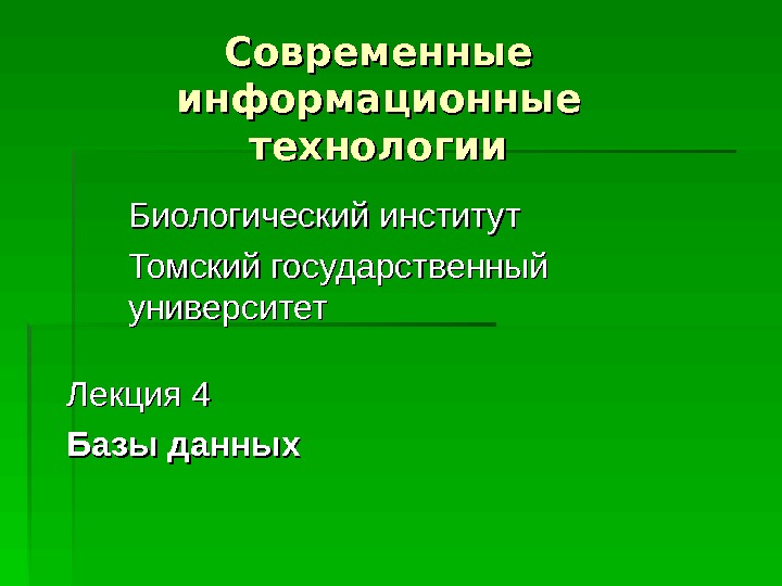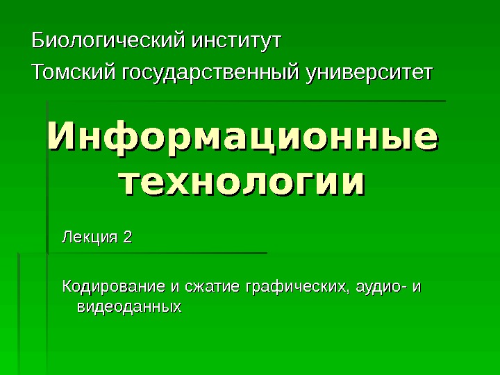 Информационные технологии. Биологический институт Томский государственный университет Лекция