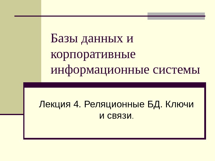 Базы данных и корпоративные информационные системы Лекция 4.