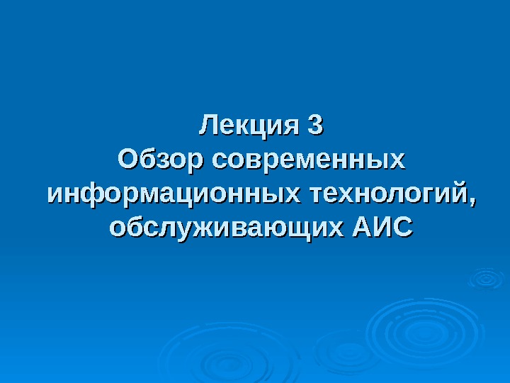 Лекция 3 Обзор современных информационных технологий, обслуживающих