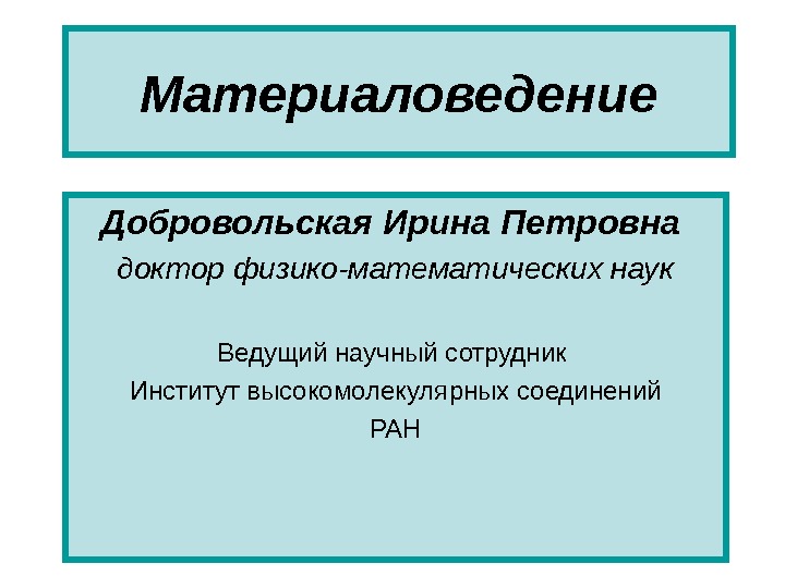 Материаловедение Добровольская Ирина Петровна доктор физико-математических наук